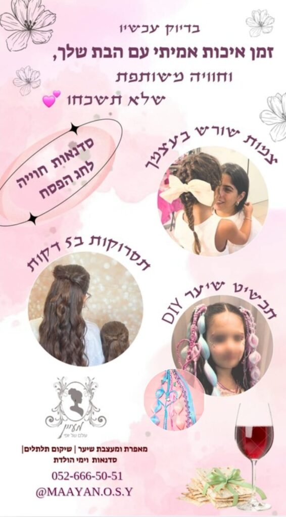 עוד בבית ספר דאגתי לכולן לתספורת, לצמות ולאיפור לאירועים .